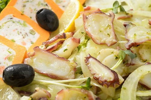 バジルとオリーブを効かせたタコのカルパッチョはサラダ風にもお楽しみいただけます。