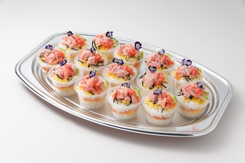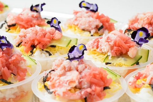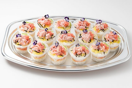 テーブルを華やかに演出するカップスタイルの散らし寿司。