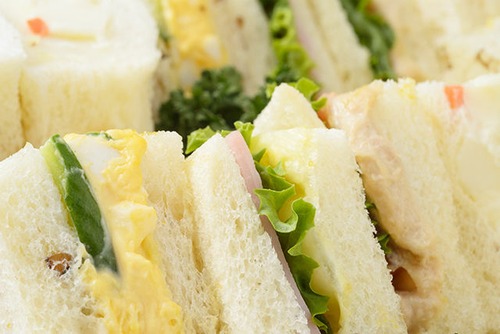 ミックスサンドイッチ(ツナ、たまご、ハム、ポテト)、ミニトマト、パセリ、レタス