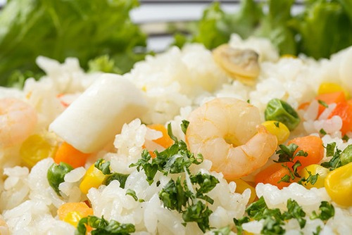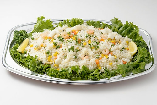 ぱらりと炊き上がったライスにシーフードの深いうま味がうれしい、お腹も大満足な1皿です。パーティにやっぱり欲しいご飯ものにぜひどうぞ。