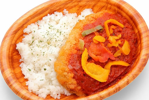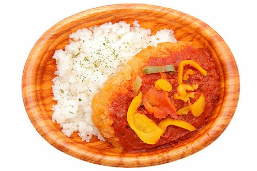 ボリュームのあるポークカツに女性に人気の自家製トマトソースをかけて「洋風丼ぶり」に仕上げました。