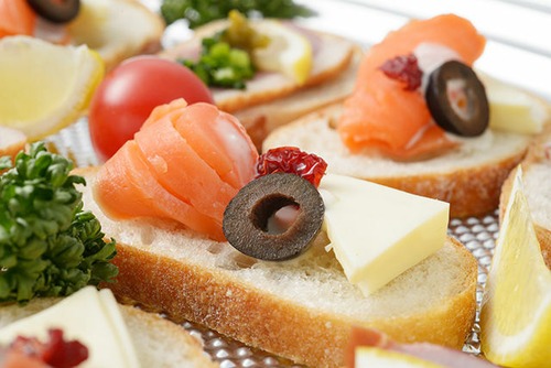 フランスパン、合鴨スモーク、スモークサーモン、